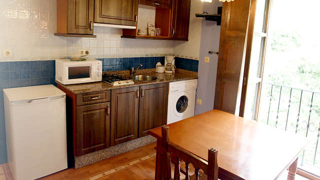 Deléitate de las vistas que ofrece el restaurante del hotel, ya que una de sus paredes es la propia roca de la montaña que acompaña a este rincón verde del Principado. Rica en marisco y pescado, productos lácteos y carne de venado, la cocina tradicional asturiana te cautivará.