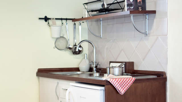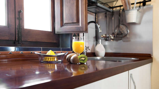 Los 7 apartamentos que componen Casa Cuesta del Agua son suites exteriores y luminosas y están perfectamente equipadas con baño de ducha y bañera de hidromasaje, salón con sofá y televisión de pantalla plana. Todos cuentan con cocina con todos los utensilios necesarios para que te sientas como en casa.