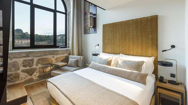 Escapada Romántica en Oporto con botella de vino y cesta de frutas a orillas del río Duero